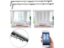Carlo Milano Gardinenschiene:Teleskop-Gardinenstange Mit Elektr. Antrieb, WLAN & App, 172 – 306 Cm