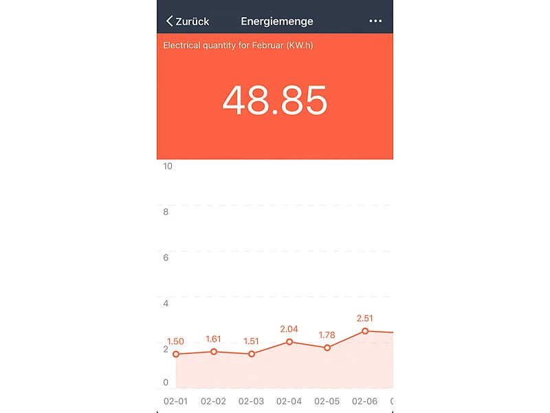- App misst den Stromverbrauch zuverlässig ab einem Verbrauch von 5 Watt: Milliampere, Volt, Watt, kW/h Tageswert, kW/h Gesamtwert