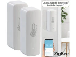 Luminea Home Control ZigBee Wassersensor:2er-Set ZigBee-Wassermelder Mit Externem Sensor, App