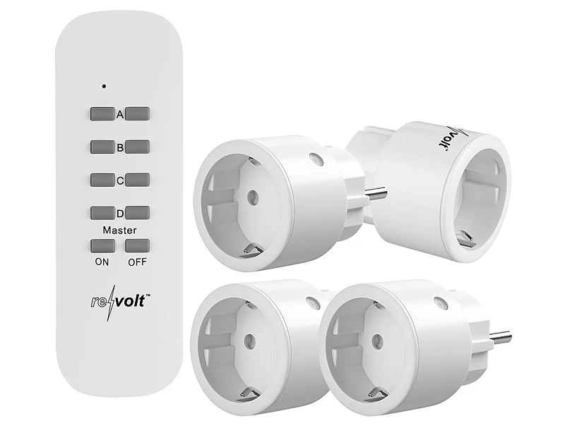 Revolt Funkstecker:4er-Set Mini-Funksteckdosen Mit Fernbedienung, Bis 2.300 Watt, 50 M