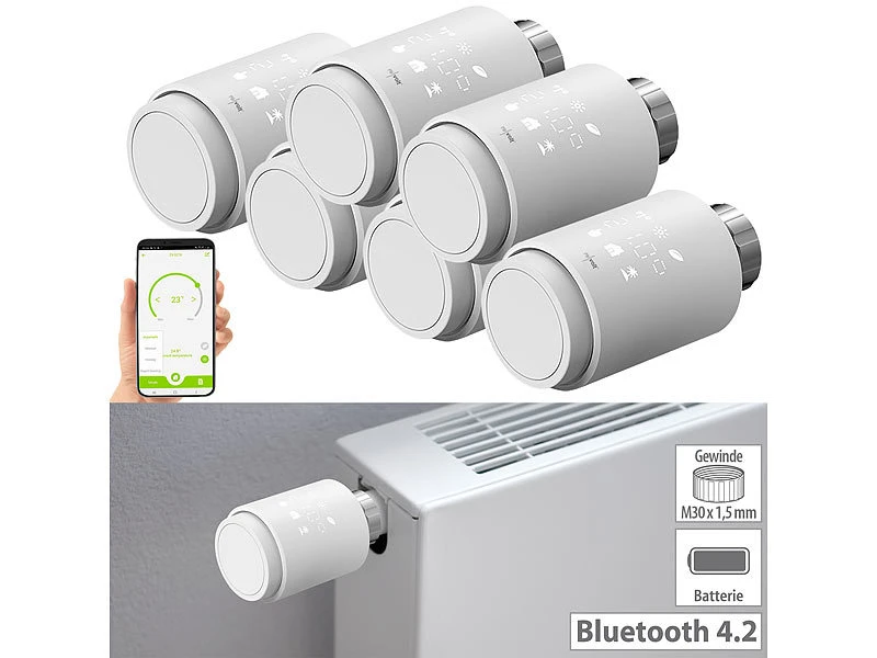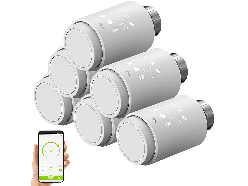 - 6 Heizkörper-Thermostat inklusive 36 Adaptern und deutscher Anleitung – Thermostatventile – Außerdem relevant oder passend zu: Handy, Smartes, Digitale, Digitales, Smarthome, Programmierbares, smarte Heizungsthermostate, Heizkörperthermostat Digital