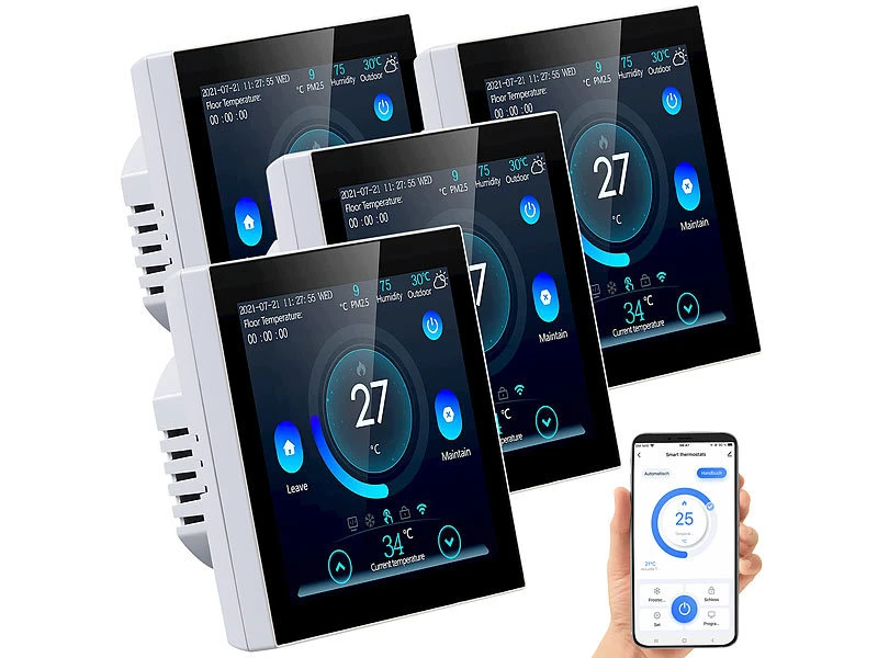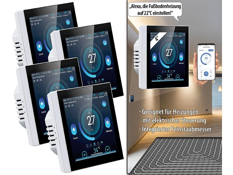 - 4 WLAN-Thermostate inklusive Montagematerial und deutscher Anleitung – Thermostat WLAN Steuerung – Außerdem relevant oder passend zu: Tablet, Smarthome